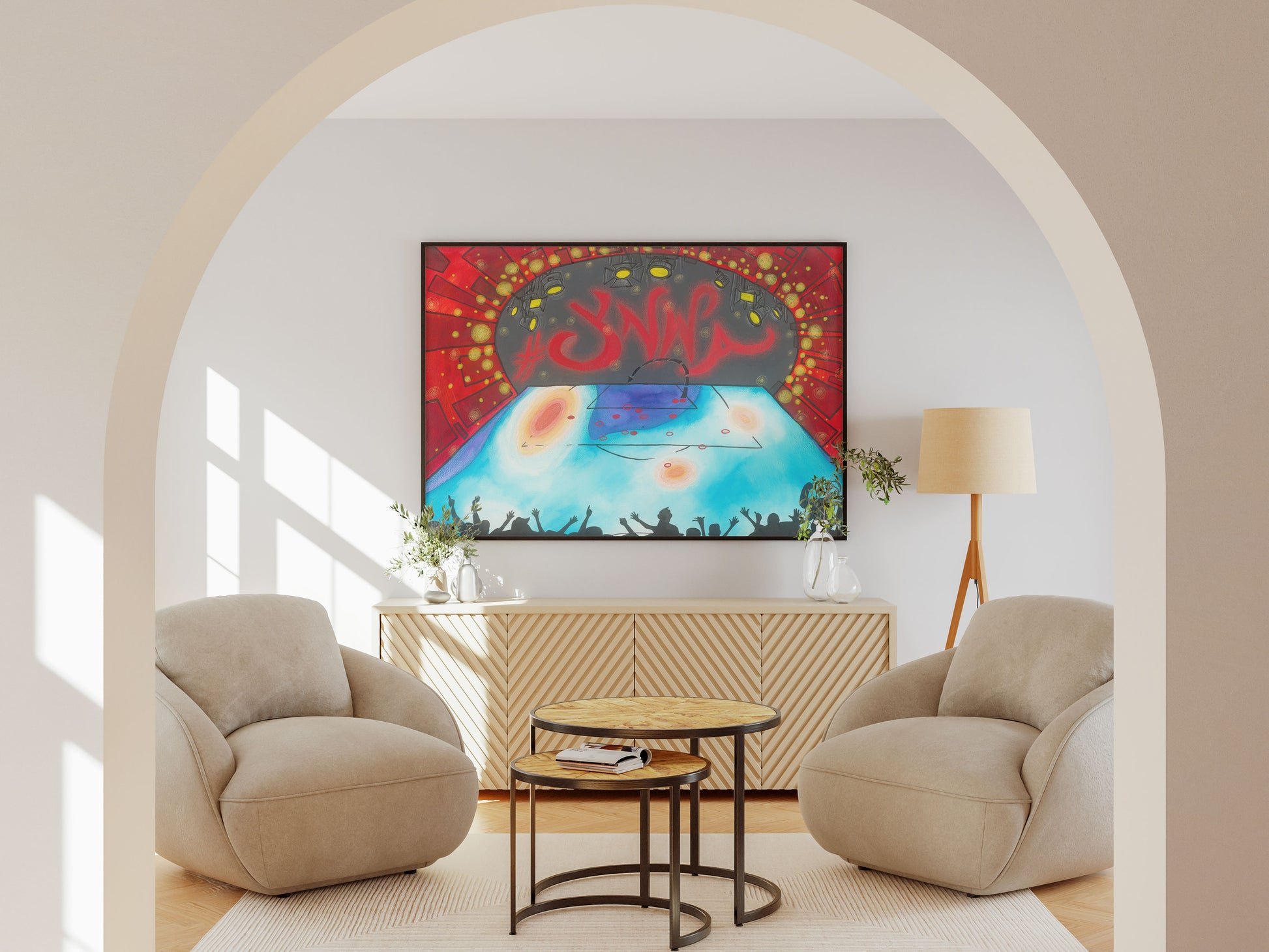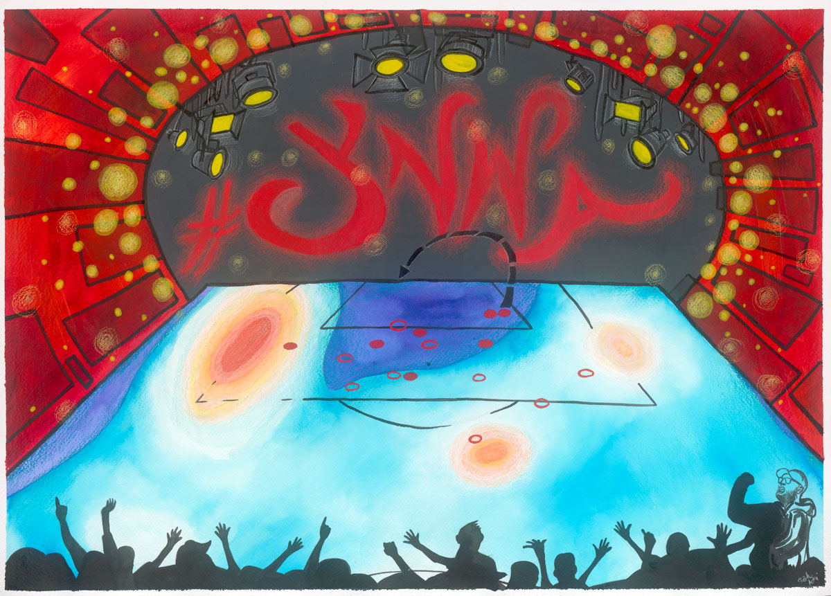 Our painting, ’The Sevens’ on stage commemorates Liverpool FC’s famous 7-0 victory against rivals Manchaster United, played on 5th March 2023 in Premier League, inspired by their shot map and xT – expected threat heatmap data visualizations.