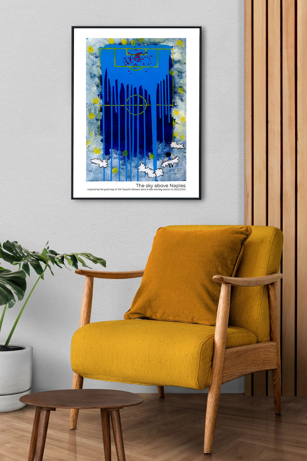 Our painting, The sky above Naples commemorates SSC Napoli’s famous title winning season in Seria A, in 2022/2023, inspired by their goal map data visualization.