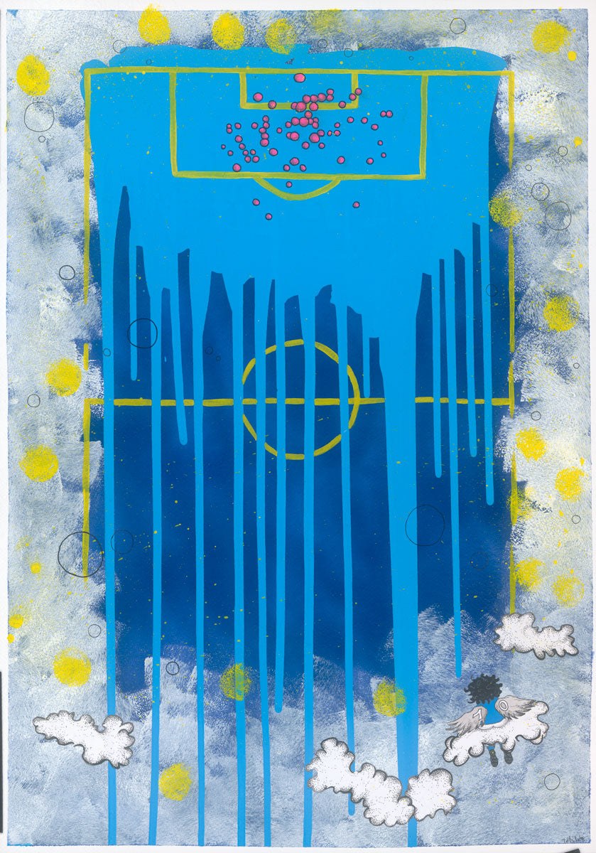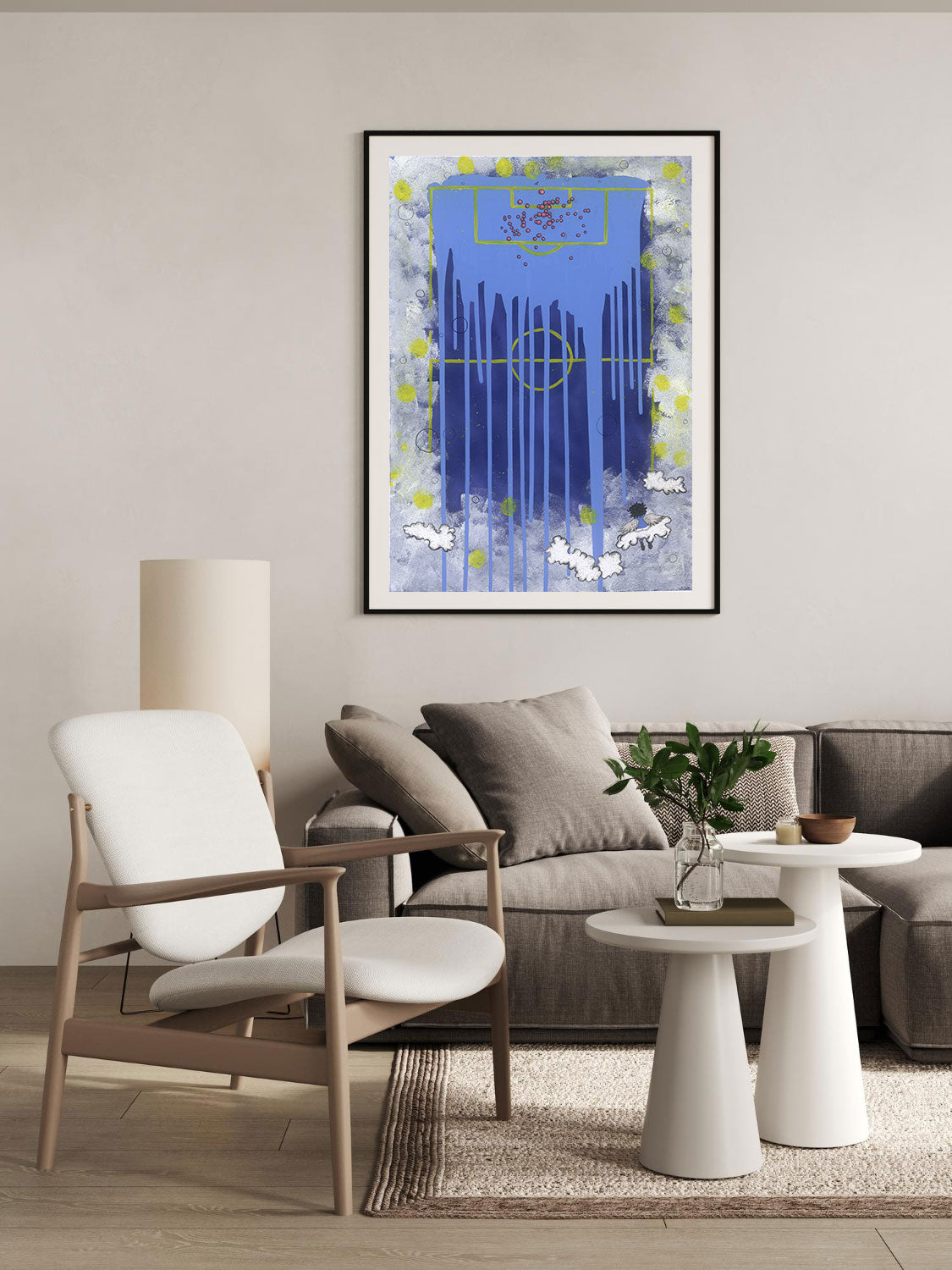 Our painting, The sky above Naples commemorates SSC Napoli’s famous title winning season in Seria A, in 2022/2023, inspired by their goal map data visualization.